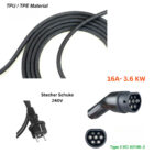 Acesta este un model universal, compatibil cu orice mașină electrică dotată cu port de încărcare TYPE 2. Oferim variante cu puteri maxime de încărcare de 3.6kW, 7.2kW, 11kW (trifazic) și 22kW (trifazic), permițându-ți să alegi opțiunea potrivită pentru viteza de încărcare dorită și capacitatea vehiculului tău.