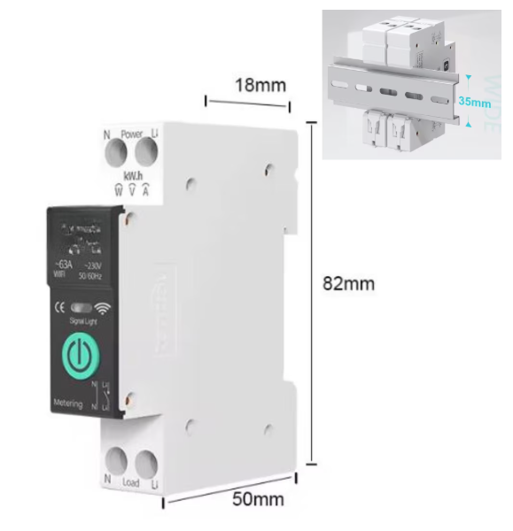 Releu smart wifi monofazic si contor de energie inteligent, 2P/63A, reglabil, fara display, protectie supratensiune si supraconsum, tuya