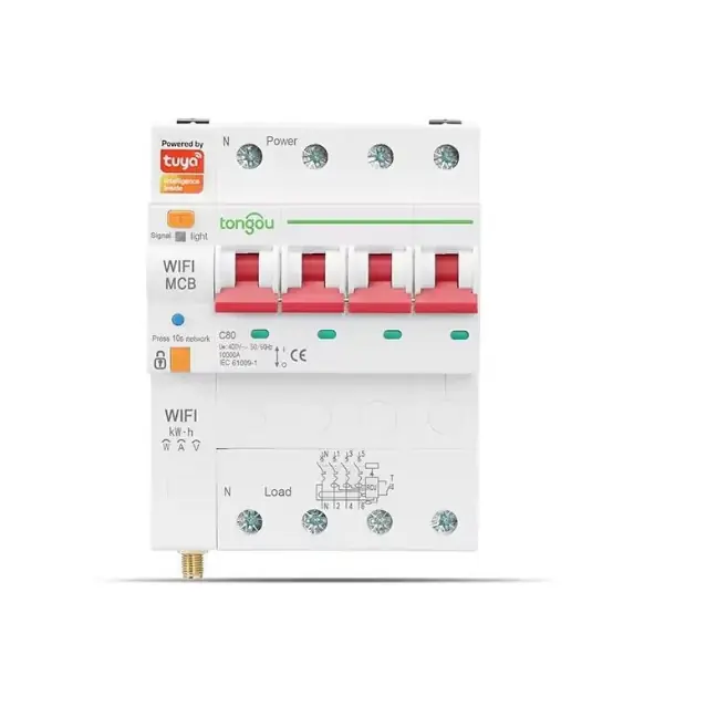 Siguranta automata inteligenta cu contorizare Zedafit, WIFI TUYA, 4P 63A, 4 poli, 3P+N, reglabil, protectie supratensiune si suprasarcina, scurgeri de curent